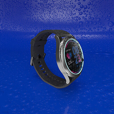 The display of a water-resistant smartwatch was glued into the watch case with Cyanolit® 290 WR (shown here in light blue)